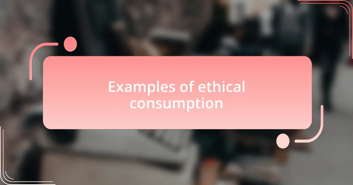 Fair trade items are another shining example of ethical consumption. I remember visiting a fair trade coffee shop where I learned that each cup not only supports sustainable farming but also provides fair wages for farmers. As I sipped my latte, I felt an extraordinary connection to the people behind my beverage, appreciating how my choice positively affected their lives. Don’t you think it’s beautiful to know that our everyday habits can be a force for good?