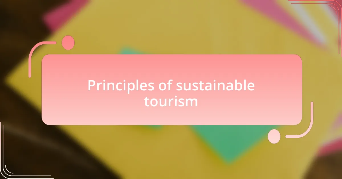 Sustainable tourism is grounded in a few key principles that guide travelers and businesses alike. One of the main ideas is minimizing negative impacts on the environment and local cultures. I remember wandering through a small village in Thailand and seeing how tourism could either uplift it or overwhelm it. It was eye-opening to realize that my choices as a traveler could either support or harm a community’s unique heritage.