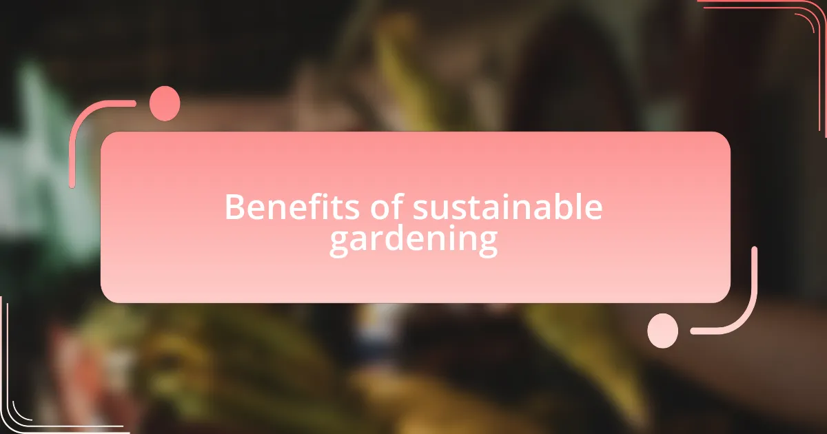 Sustainable gardening offers a wealth of benefits that extend beyond just growing plants. For me, the true joy came from watching the garden transform into a thriving habitat for wildlife. I recall the day I spotted a family of rabbits happily munching on clover—in that moment, I realized I was creating a safe haven, contributing to the local ecosystem instead of merely cultivating a patch of soil.