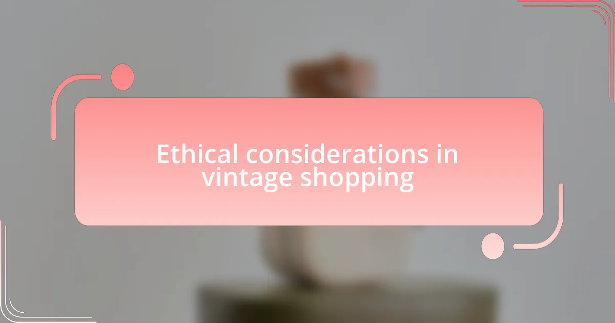 Ethical considerations in vintage shopping cannot be overlooked. When I peruse the racks of pre-loved garments, I often reflect on the environmental impact of fast fashion. It’s remarkable to think that by choosing vintage, I’m not only breathing new life into a piece of clothing but also reducing the demand for new production, which is often linked to waste and pollution. Have you ever considered the difference you can make by opting for something already made?